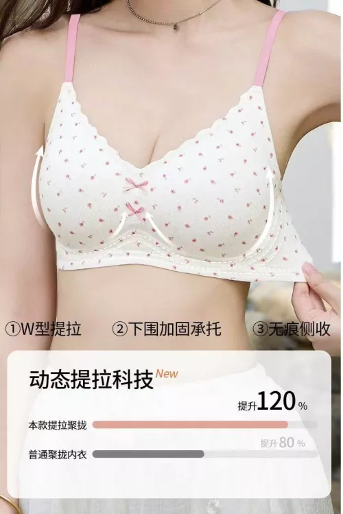 无痕内衣小胸聚拢显圆显大碎花少女纯欲文胸罩[4件装]