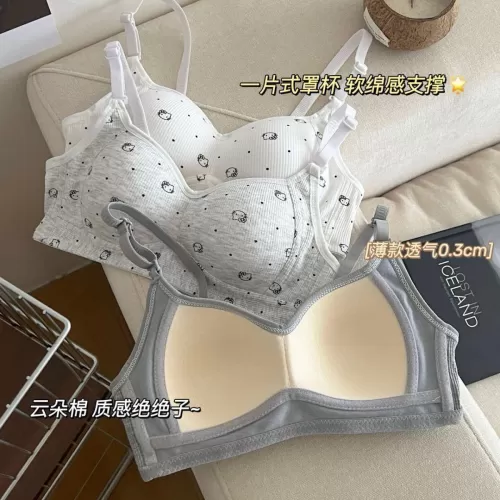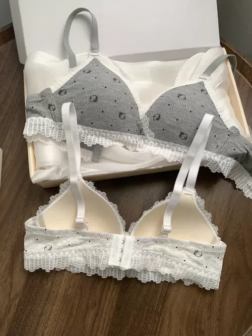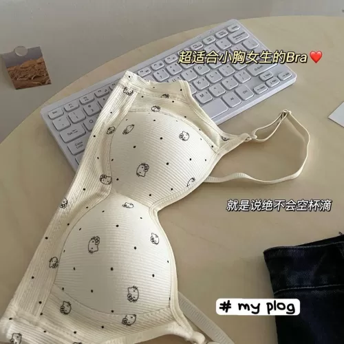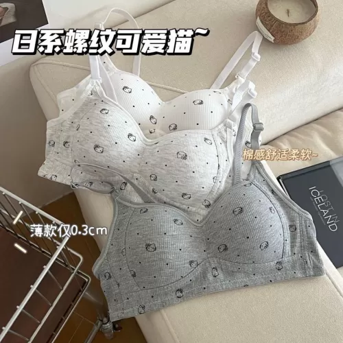 可爱猫咪 蕾丝边少女内衣小胸聚拢无钢圈三角杯文胸罩[9件装]